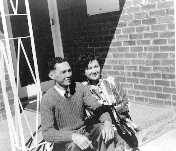 GERRY AND MARGARET OUTSIDE BOGAAR'S HOME, GEELONG, AUSTRALIA (C1957)