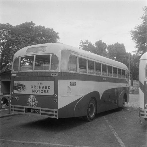REAR VIEW OF A CHANGI BUS COMPANY SEDDON BUS AT UNION JACK CLUB, SHOWING NEW 1955 LIVERY