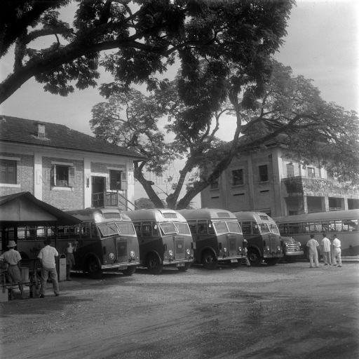 SEDDON BUSES FROM THE KUALA LUMPUR, KLUANG & PORT SWETTENHAM CO (MALAYA) AT A MARKET