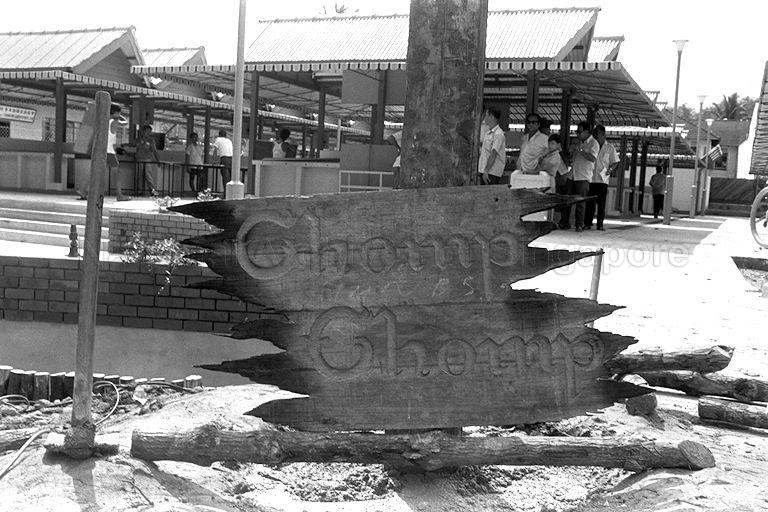 RESIDENTS O F SERANGOON GARDENS WILL SOON GET TO HAVE THEIR NEW HAWKER CENTRE AT "CHOMP CHOMP" IN KENSINGTON PARK ROAD. THE CENTRE COSTING $95,000 WILL RESITE THE COOKED FOOD HAWKERS WHO WERE FORMERLY SELLING AT THE BUS BAY N SERANGOON GARDEN CIRCUS. A DOZEN BOYS FROM SERANGOON GARDEN SECONDARY SCHOOL HELPED TO PUT UP THE "CHOMP CHOMP" SIGNBOARD OUTSIDE THE CENTRE.