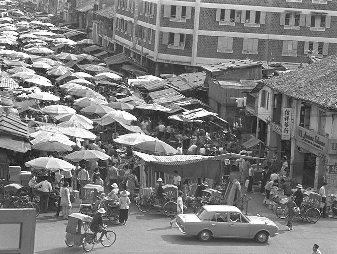 QUEEN STREET AND MIDDLE ROAD. BUSTLING WITH HAWKER STALLS PEDDLING THEIR FOOD NEAR THE NARROW ALLEY OF CENTURY-OLD SHOPHOUSES.