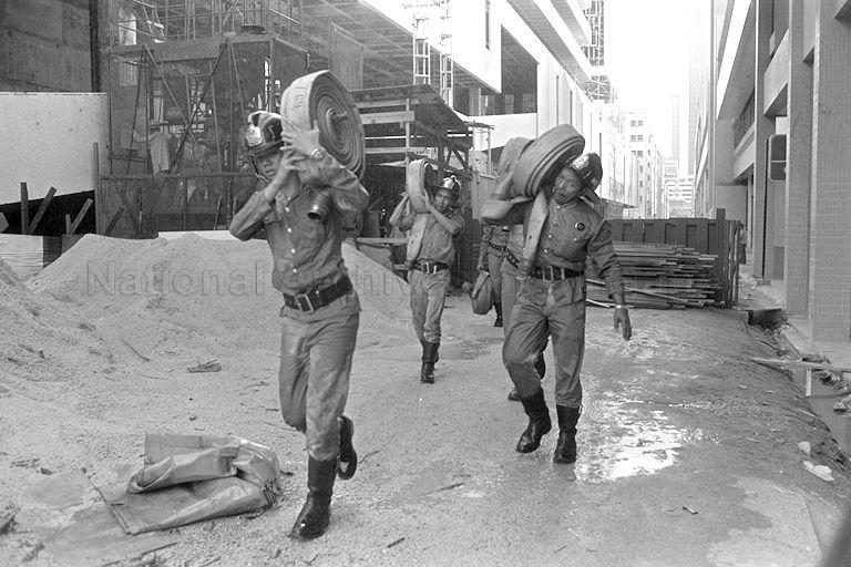EIGHTY-TWO OFFICERS AND FIREMEN FOUGHT A FIVE-HOUR HIGH-RISE BLAZE AT THE 45-STOREY CENTRAL PROVIDENT FUND (CPF) BOARD BUILDING IN ROBINSON ROAD. THIS IS BELIEVED TO BE THE HIGHEST HIGH-RISE FIRE IN THE CITY SO FAR, WHERE SKYSCRAPERS ARE REACHING AS HIGH AS 50 STOREYS OR EVEN HIGHER. THE FIRE AT THE $41 MILLION CPF BOARD BUILDING, WHICH IS STILL UNDER CONSTRUCTION, STARTED ON THE 42ND FLOOR AT 1.15 AM, FOLLOWED BY A SERIES OF EXPLOSIONS.