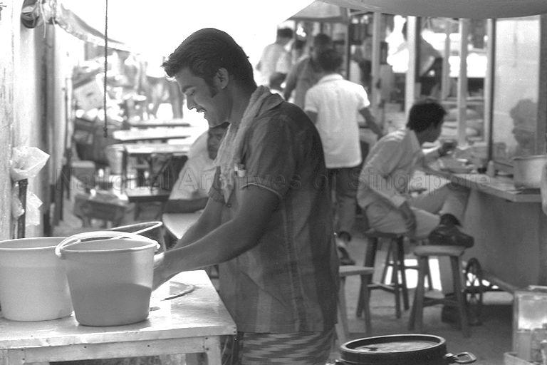 A ROTI PRATA SELLER AT HIS STALL BEHIND THE REX CINEMA