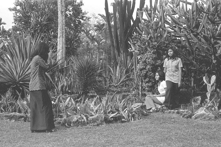 THESE THREE LADIES ARE CELEBRATING HARI RAYA PUASA AT THE SINGAPORE BOTANIC GARDENS