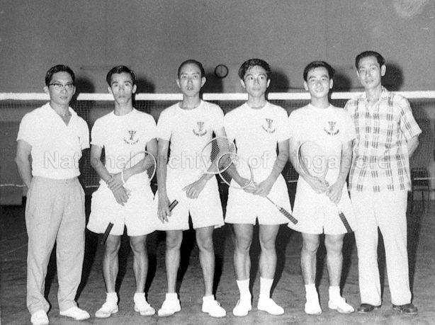 CHUNG CHENG HIGH SCHOOL, BADMINTON TEAM GROUP PHOTO. (COACH TAN CHONG TEE ON EXTREME RIGHT. EXTREME LEFT - BAO LONG, PHYSICAL EDUCATION TEACHER-IN-CHARGE).
