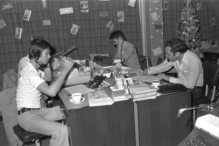 MEMBERS OF THE KIWANIS CLUB - ALPHA CHAPTER MANNING THE HOTLINE WHERE CHILDREN CALL IN TO TELL THEM WHAT PRESENTS THEY WANTED FOR CHRISTMAS. THE IDEA OF RUNNING THIS TELEPHONE SERVICE FOR THE PUBLIC WAS FIRST MOOTED BY TIMES PUBLISHING'S SALES PROMOTION MANAGER, TAN SWEE LEONG. AS MANY CHILDREN STILL BELIEVED IN SANTA CLAUS, HE DECIDED THIS SERVICE WOULD HELP TO RETAIN SOME OF THE MAGIC OF CHRISTMAS. THE PLAN WAS FOR CHILDREN TO CALL IN THEIR REQUESTS AND THEN SUBSEQUENTLY FOR 'SANTA CLAUS' (MEMBERS OF THE KIWANIS CLUB - ALPHA CHAPTER) TO RING BACK THE REQUESTS TO THE PARENTS. SEVERAL PARENTS APPRECIATED THIS SERVICE, THOUGH A FEW EXPRESSED DISAPPOINTMENT AND EVEN ANGER AS THEY EXPECTED FREE GIFTS.