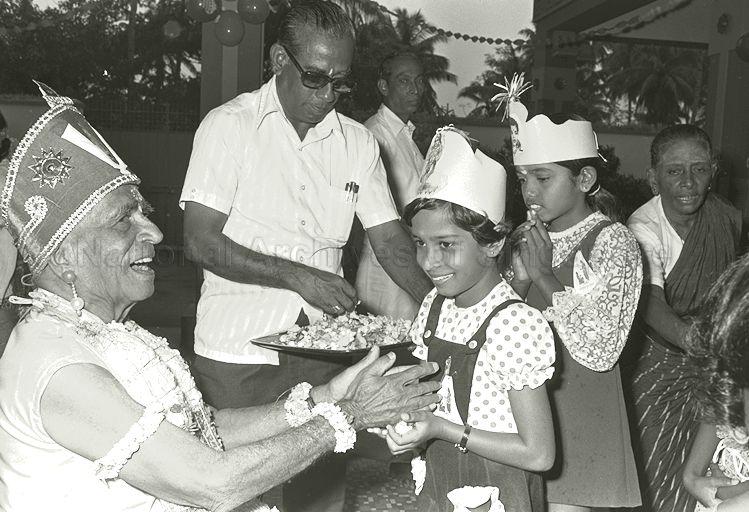 "DEEPAVALI GRANDFATHER" PRESENTING SWEETS TO CHILDREN AT PERUMAL TEMPLE