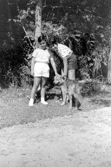 TWO EURASIAN CHILDREN WITH PET DOG