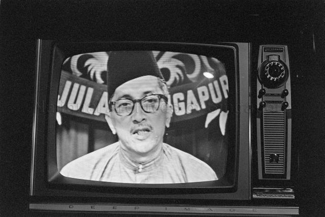 Opening of regular television service at Radio Television Singapura - Television broadcast of Yang di-Pertuan Negara Yusof Ishak at the opening