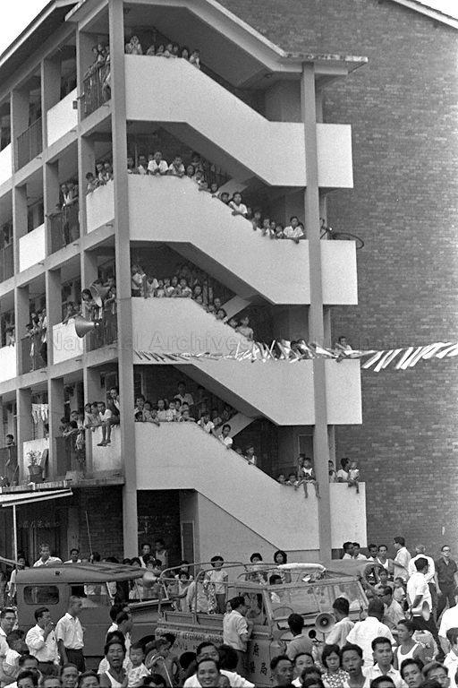 FLAT DWELLERS WAITING FOR PRIME MINISTER LEE KUAN YEW DURING HIS CONSTITUENCY TOURS OF TIONG BAHRU, DELTA AND HAVELOCK AREAS