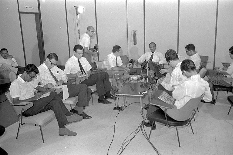 MINISTER FOR FOREIGN AFFAIRS S RAJARATNAM MEETS THE PRESS BEFORE HE LEAVES FOR THE UNITED NATIONS CONFERENCE
