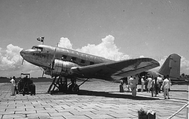 An aircraft from KNILM (Royal Netherlands Indies Aviation Company), a colonial airline, at Kallang Airport