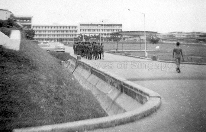 SOLDIERS MARCHING AT THE SCHOOL OF MANPOWER MANAGEMENT, SINGAPORE ARMED FORCES TRAINING INSTITUTE, PASIR LABA CAMP.