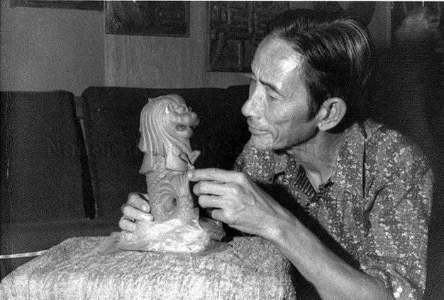 LIM NANG SENG SCULPTING ONE OF THE MERLION STATUES