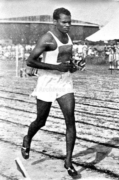 M K SUNDRAM, SINGAPORE'S BEST 440 YARDS RUNNER IN 1938, SEEN RUNNING THE EVENT IN 53.0 SEC AT ROYAL AIR FORCE (RAF) SELETAR FIELD