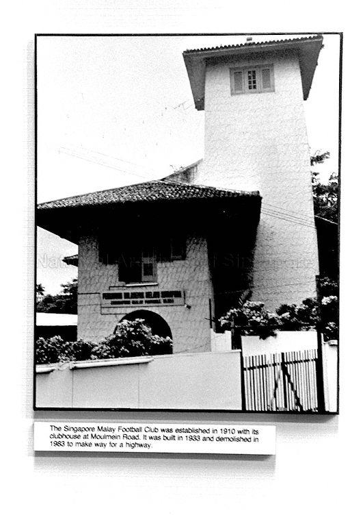 SINGAPORE MALAY FOOTBALL CLUB ESTABLISHED IN 1910 WITH ITS CLUBHOUSE AT MOULMEIN ROAD WAS BUILT IN 1933 AND DEMOLISHED IN 1983 TO MAKE WAY FOR A HIGHWAY