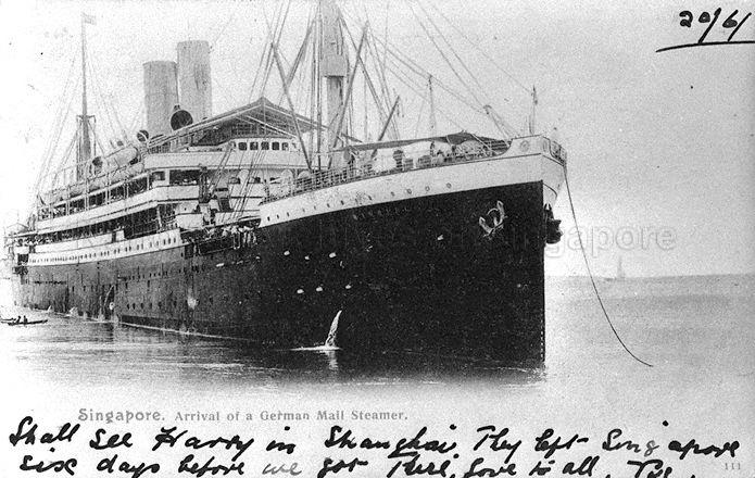 GERMAN MAIL STEAMER ARRIVES AT PORT OF SINGAPORE