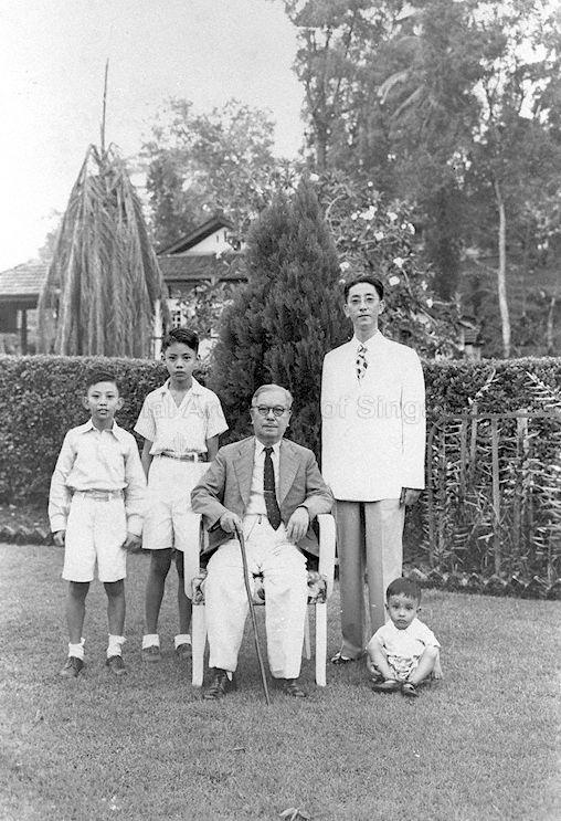 TAN KAH KEE WITH KOK KHENG (FIFTH SON) AND GRANDCHILDREN TAN SOO TIONG, TAN SOO TANG AND TAN SOO PANG AT KOK KHENG'S RESIDENCE AT BARKER ROAD, SINGAPORE