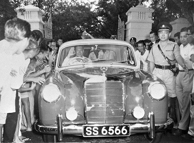 PEOPLE'S ACTION PARTY (PAP) SECRETARY-GENERAL LEE KUAN YEW LEAVING THE ISTANA AFTER HIS MEETING WITH GOVERNOR SIR WILLIAM GOODE