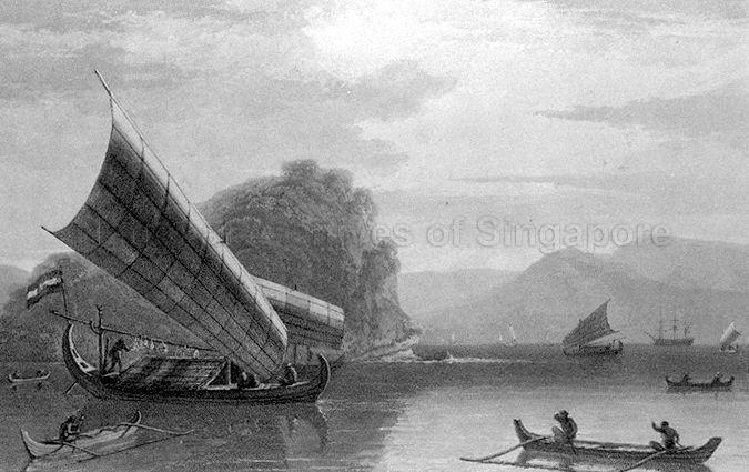 MALAY SAILING BOATS AND CANOES DRAWN AND ENGRAVED BY THOMAS AND WILLIAM DANIELL