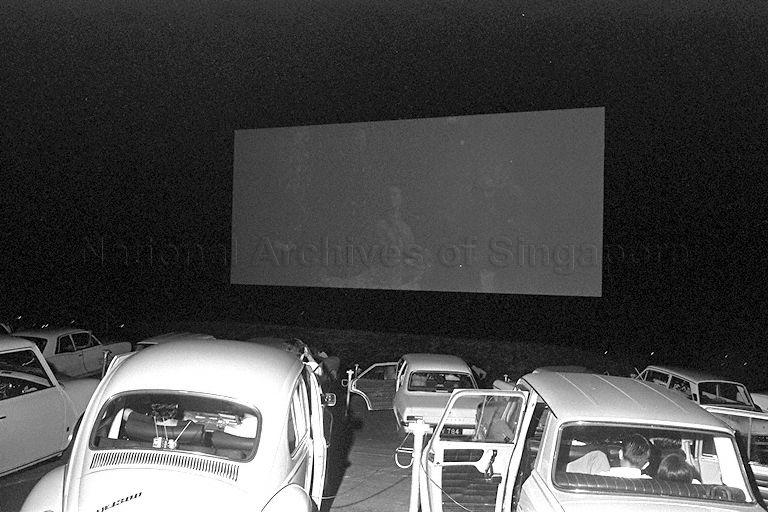 MINISTER FOR CULTURE, JEK YEUN THONG OPENS JURONG DRIVE-IN CINEMA AT YUAN CHING ROAD, JURONG. PICTURE SHOWS PATRONS WATCHING THE CINEMA SHOW FROM THEIR CARS