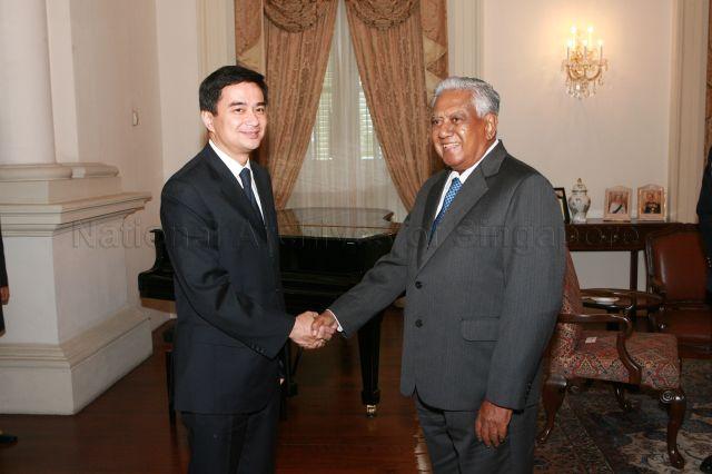 PRIME MINISTER ABHISIT VEJJAJIVA OF THAILAND CALLS ON PRESIDENT S R NATHAN AT ISTANA