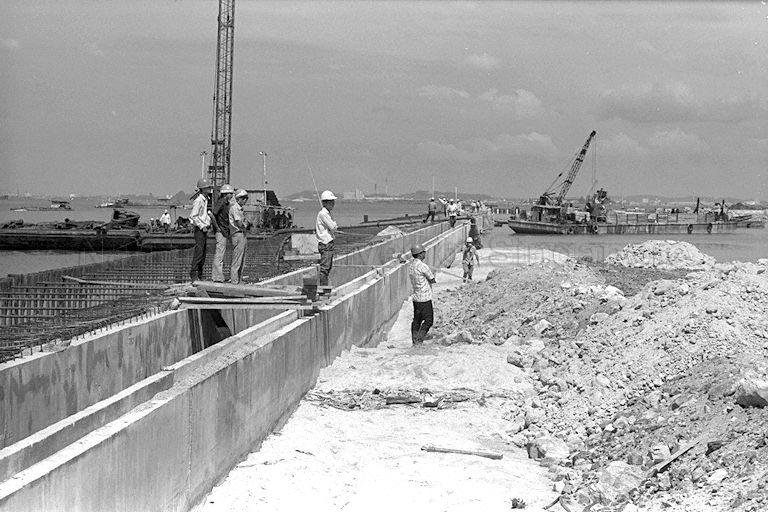 VIEW OF WEST COAST PASIR PANJANG RECLAMATION SCHEME SITE TAKEN DURING MINISTER FOR COMMUNICATIONS YONG NYUK LIN'S INSPECTION BEFORE OPENING OF PORT OF SINGAPORE AUTHORITY (PSA)'S $24 MILLION 5-STOREY ENGINEERING SERVICES DIVISION BUILDING