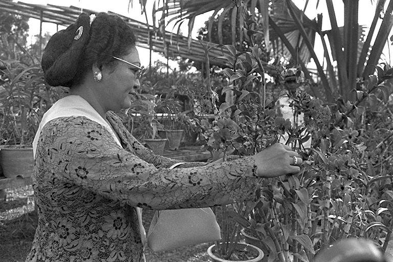 MADAM TIEN SUHARTO, WIFE OF PRESIDENT OF INDONESIA, VISITS ORCHID GARDEN AT MANDAI