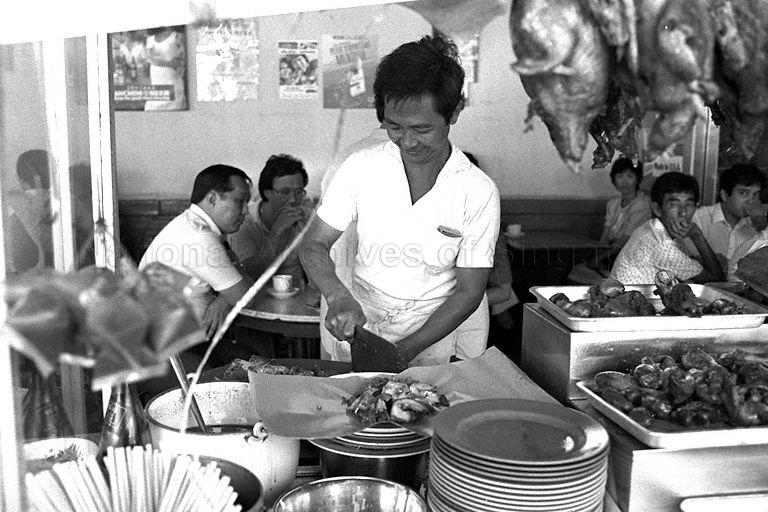 ROAST PORK AND DUCK RICE STALL IN COFFEE-SHOP, HILL STREET (C1980)