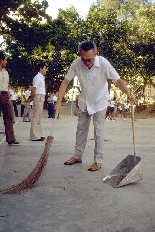 PRIME MINISTER LEE KUAN YEW PARTICIPATING IN THE "USE YOUR HANDS CAMPAIGN"