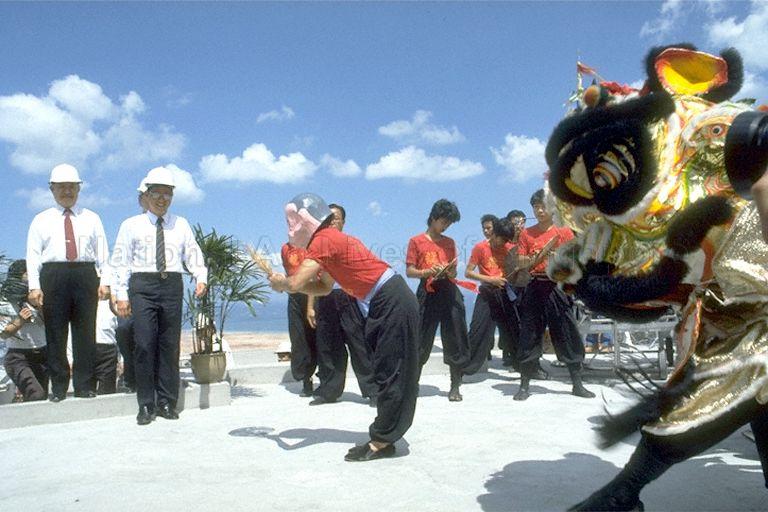 LION DANCE PERFORMANCE DURING TOPPING OUT CEREMONY OF RAFFLES CITY OFFICIATED BY DR WONG KWEI CHEONG, MINISTER OF STATE (TRADE & INDUSTRY)