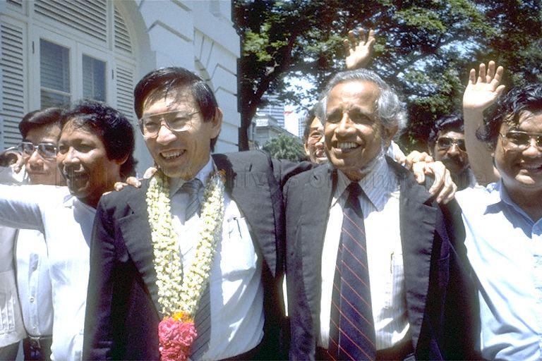 MR CHIAM SEE TONG, MEMBER OF PARLIAMENT (POTONG PASIR) AND MR J B JEYARETNAM, MEMBER OF PARLIAMENT (ANSON) AND SUPPORTERS ARRIVE AT OPENING OF PARLIAMENT
