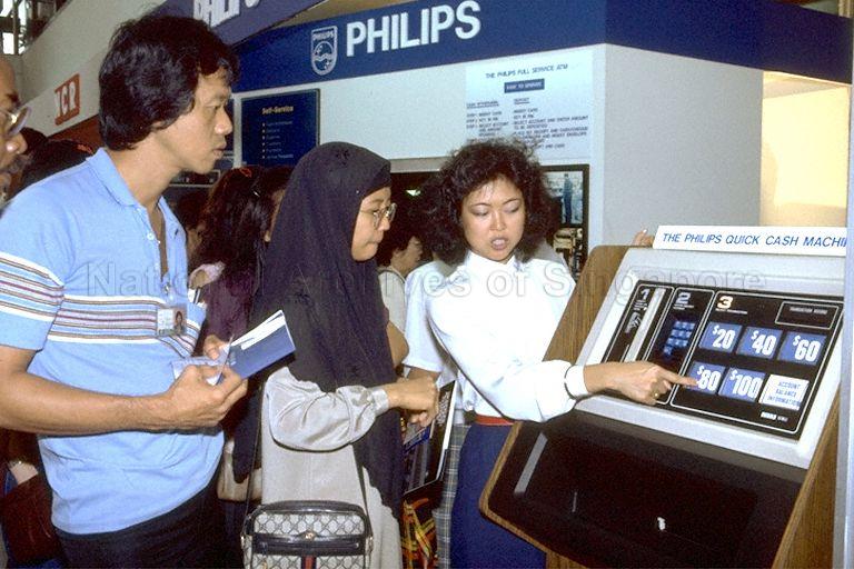 VISITORS AT PHILIPS QUICK CASH MACHINE AT AUTO TELLER MACHINE EXHIBITION, SINGAPORE CONFERENCE HALL