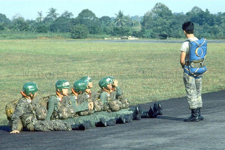 NATIONAL CADET CORPS (NCC) PREPARE FOR PARACHUTE JUMP AT SEMBAWANG AIR BASE DURING A 2 1/2-WEEK AIRBORNE TRAINING COURSE