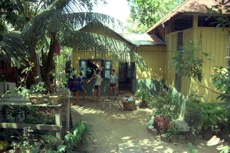 CHILDREN PLAYING IN FRONT OF HOUSE AT KAMPUNG WAK SUMANG (ALSO KNOWN AS KAMPUNG PUNGGOL)