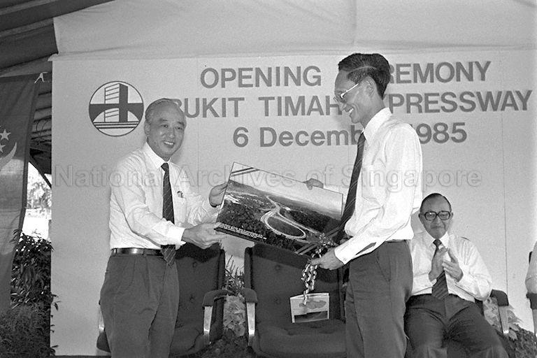PRESENTATION OF SOUVENIR AT THE OPENING CEREMONY OF THE BUKIT TIMAH EXPRESSWAY ATTENDED BY THE MINISTER FOR NATIONAL DEVELOPMENT TEH CHEANG WAN