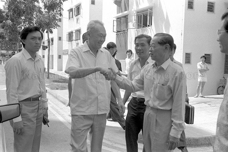 PRIME MINISTER LEE KUAN YEW ARRIVING FOR "TANJONG PAGAR DAY" CELEBRATION AT BLOCK 7, EVERTON PARK