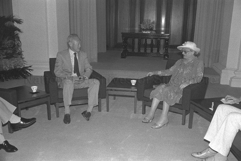 MALTESE PRESIDENT MISS AGATHA BARBARA PAYING A COURTESY CALL ON PRIME MINISTER LEE KUAN YEW AT THE ISTANA STATE ROOM