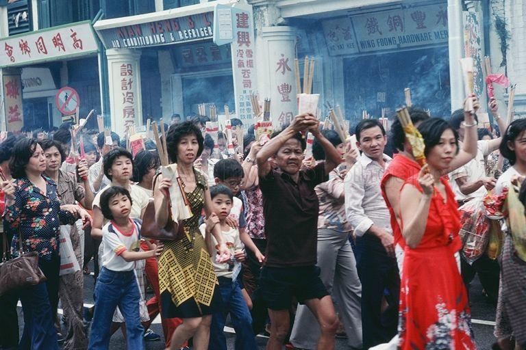 DUXTON ROAD TEMPLE "KWAN YIN" BIRTHDAY CELEBRATION -- A SECTION OF THE DEVOTEES FOLLOWING THE PROCESSION ALONG TANJONG PAGAR