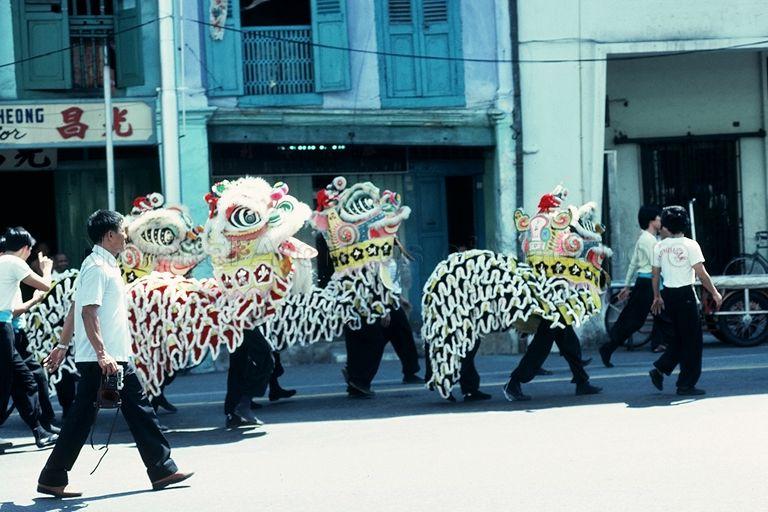DUXTON ROAD TEMPLE "KWAN YIN" BIRTHDAY CELEBRATION -- LION DANCE AT THE BIRTHDAY PROCESSION