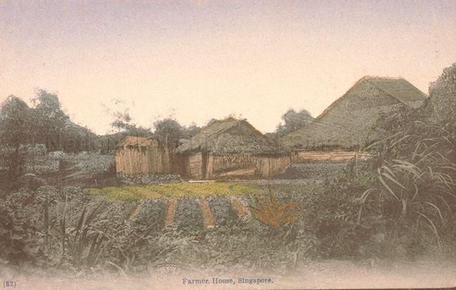 Rural landscape of wooden houses with small farming plot of vegetables, Singapore