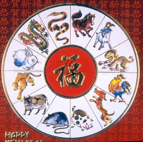 CHINESE NEW YEAR CARD WITH 12 ZODIAC SIGNS.