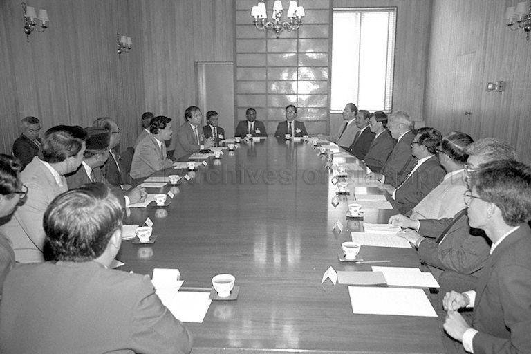 JOHOR MENTERI BESAR HAJI MUHIYIDDIN BIN HAJI MOHD YASSIN AND DELEGATION AT A MEETING WITH PRIME MINISTER LEE KUAN YEW AT THE ISTANA