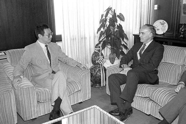 UNITED STATES (US) SENATOR DANIEL JACKSON EVANS CALLS ON ACTING MINISTER FOR TRADE AND INDUSTRY AND MINISTER OF DEFENCE FOR DEFENCE BRIGADIER-GENERAL (NS) LEE HSIEN LOONG AT CPF BUILDING