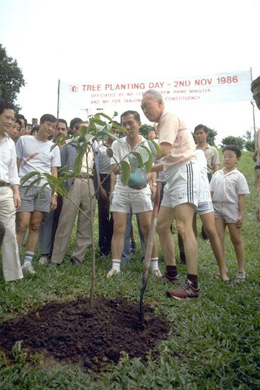PRIME MINISTER LEE KUAN YEW PARTICIPATING AT TREE PLANTING AT SPOTTISWOODE PARK DURING THE COMMEMORATION OF TREE PLANTING DAY