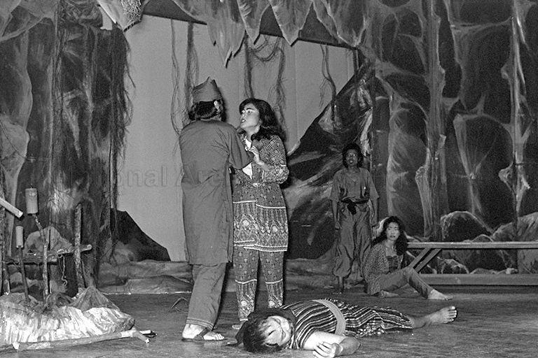 REHEARSAL OF A MALAY PLAY AT VICTORIA THEATRE, STAGED BY SRIWANA FOR DRAMA FESTIVAL 1981