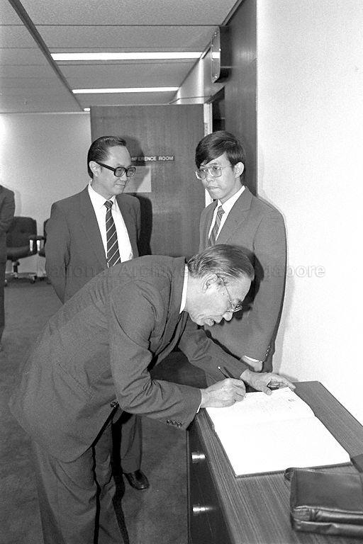 DEPUTY MINISTER OF NO 1 INDUSTRY V KHIN MAUNG AUNG OF SOCIALIST REPUBLIC OF THE UNION OF BURMA SIGNING GUEST BOOK DURING COURTESY CALL ON MINISTER FOR TRADE AND INDUSTRY AND SECOND MINISTER FOR DEFENCE (SERVICES) BRIGADIER-GENERAL (NS) LEE HSIEN LOONG AT CPF BUILDING