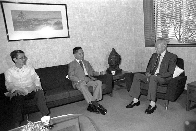 PHILIPPINE FOREIGN SECRETARY RAUL MANGLAPUS PAID COURTESY CALL ON PRIME MINISTER LEE KUAN YEW AT THE ISTANA