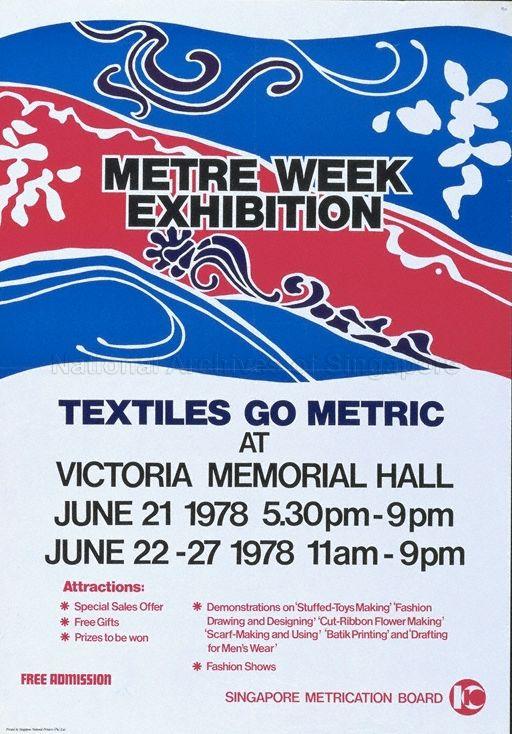 Metre Week Exhibition - textiles go metric at Victoria Memorial Hall, June 21 1978, 5:30pm - 9pm; June 22 - 27 1978 11am - 9pm