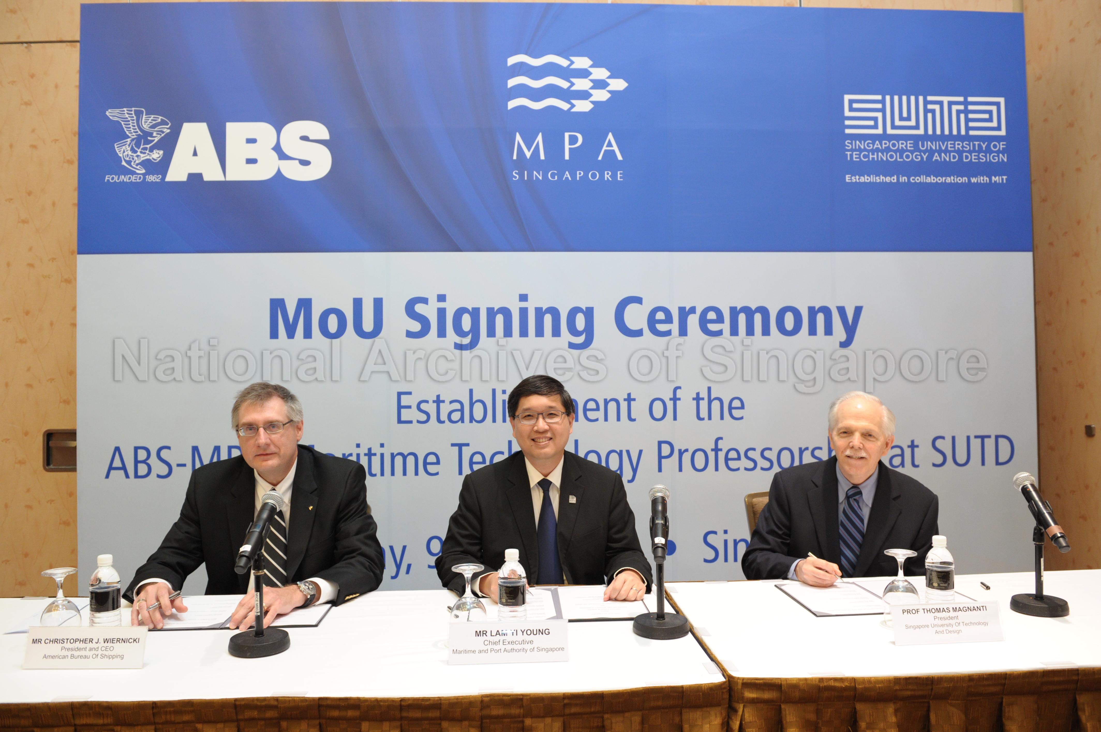 ABS, MPA AND SUTD INK MOU ON MARITIME TECHNOLOGY PROFESSORSHIP